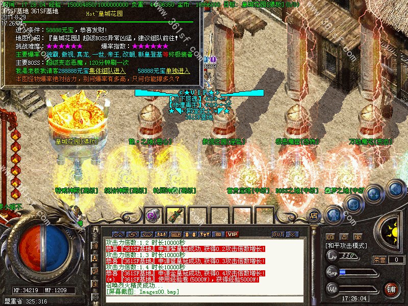 【更新】新增地图【万劫魔宅】打晶石的好地方,所有装备都暴!【极恶魔窖】打元宝的好地方! 【皇城花园】【帝国广场】装备暴率超高!
