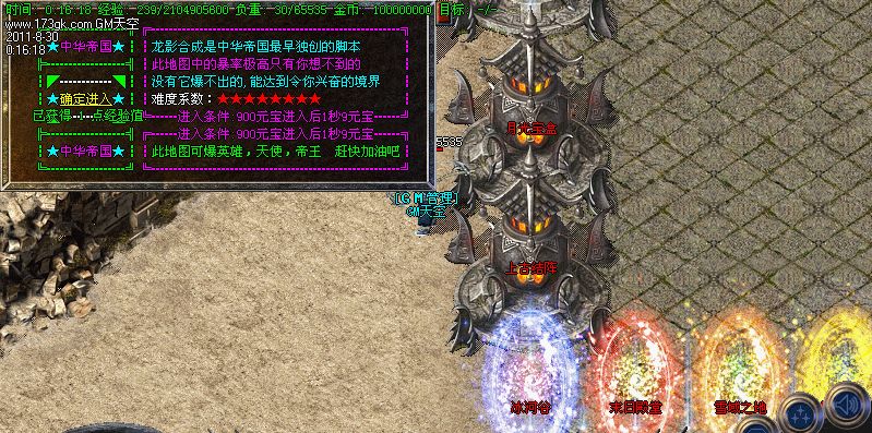 立即下载GM天空神话v1.80帝王②合①靓装元素版_上古神殿_冰河谷_月光宝盒_末日殿堂