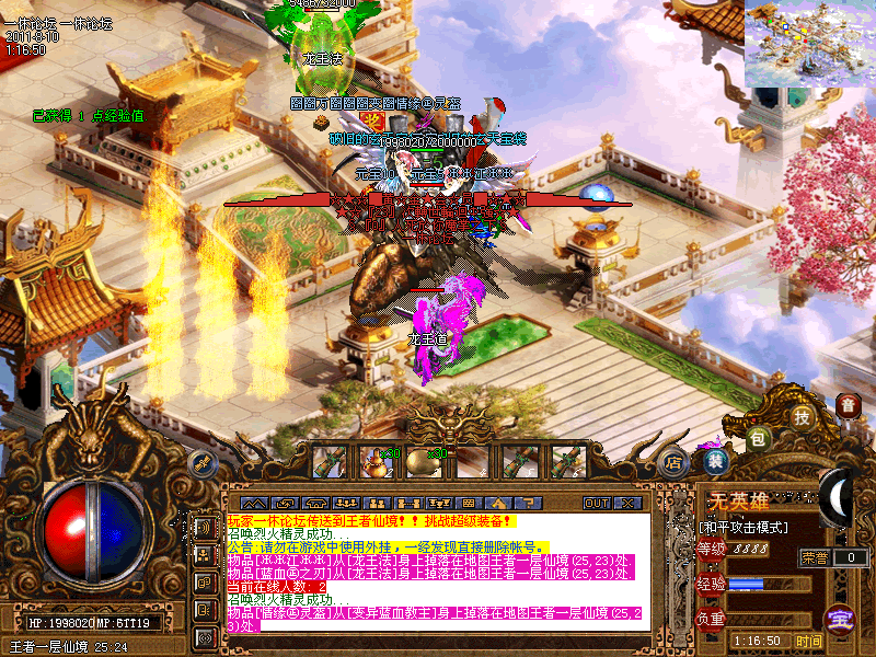 公告:龙宫怪物非常厉害,建议8转以上玩家进行,转生请查看土NPC《封神榜》!!!亲王、龙宫可以打到理想的装备,直接爆500YB,1000YB,有实力的玩家进!!!!