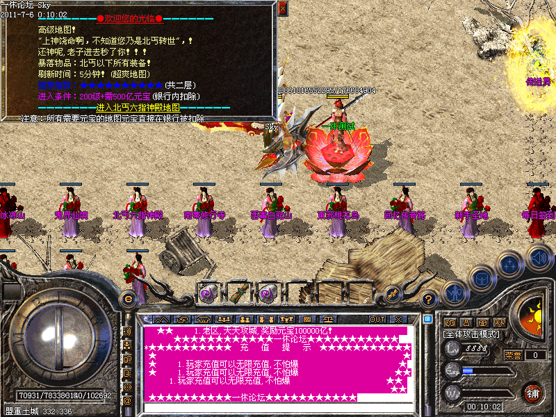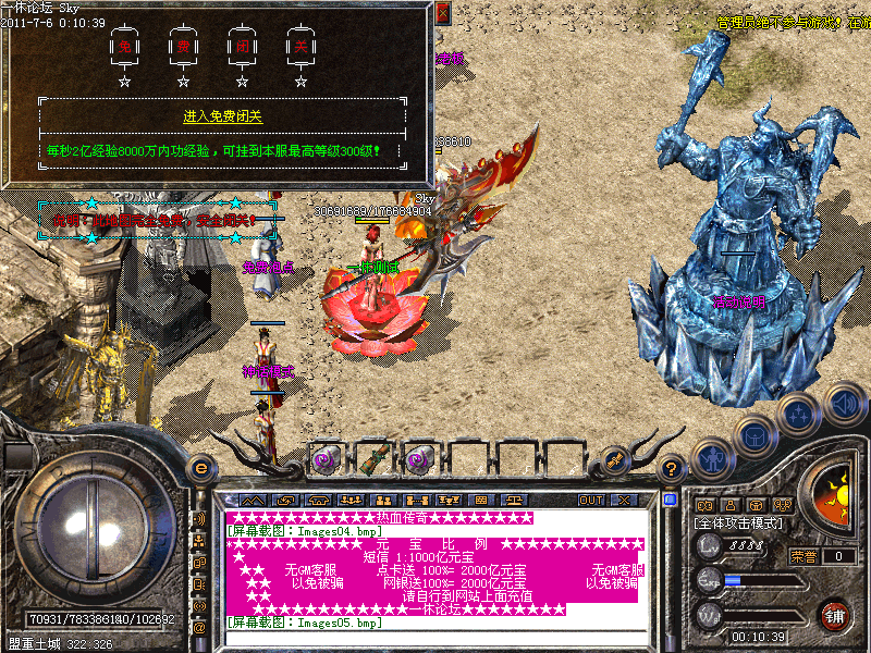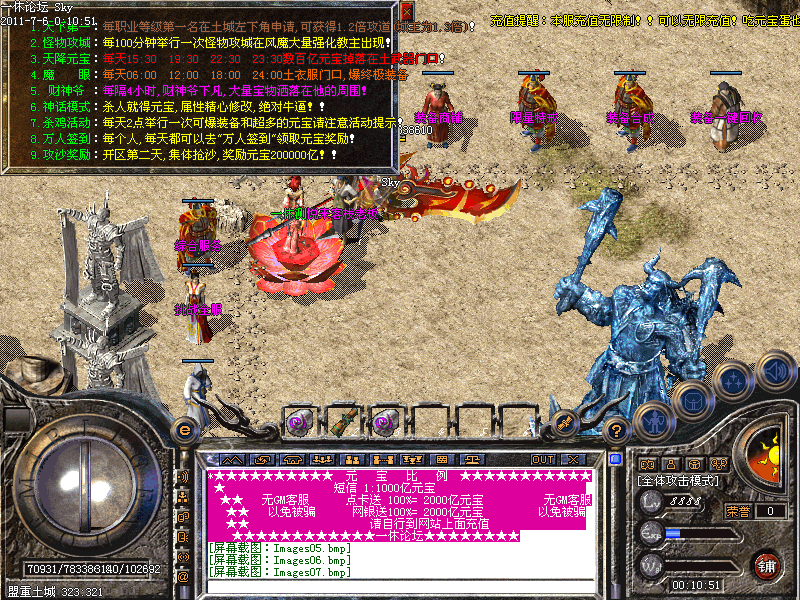【天降元宝】:每天15:30 19:30 22:30 23:30数百亿元宝在土武器门口