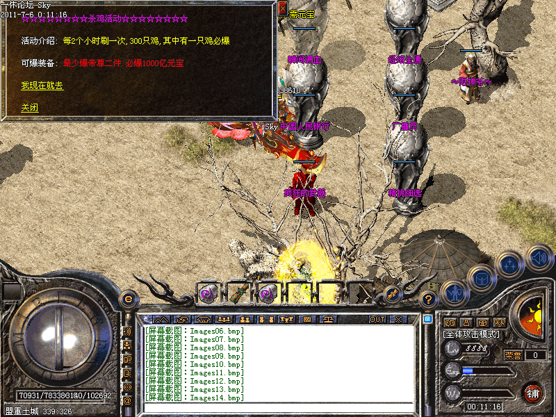 【杀鸡活动】:每天2点举行一次可爆装备和超多的元宝请注意活动提示
