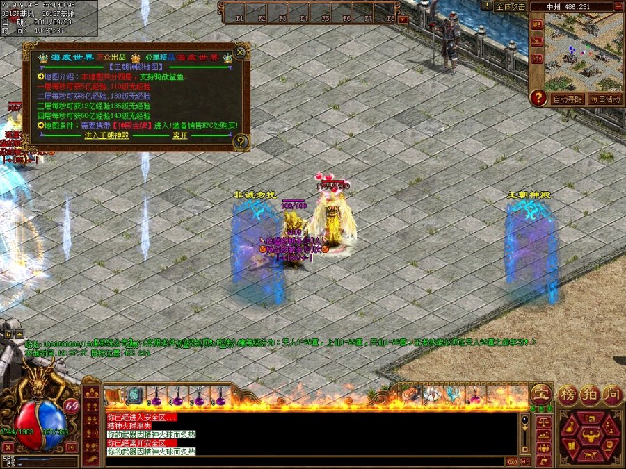 【系统公告】:新增加.10个打宝地图.牛比的怪物.牛比的暴率.万花楼每天免费进入一次.直接爽到心底