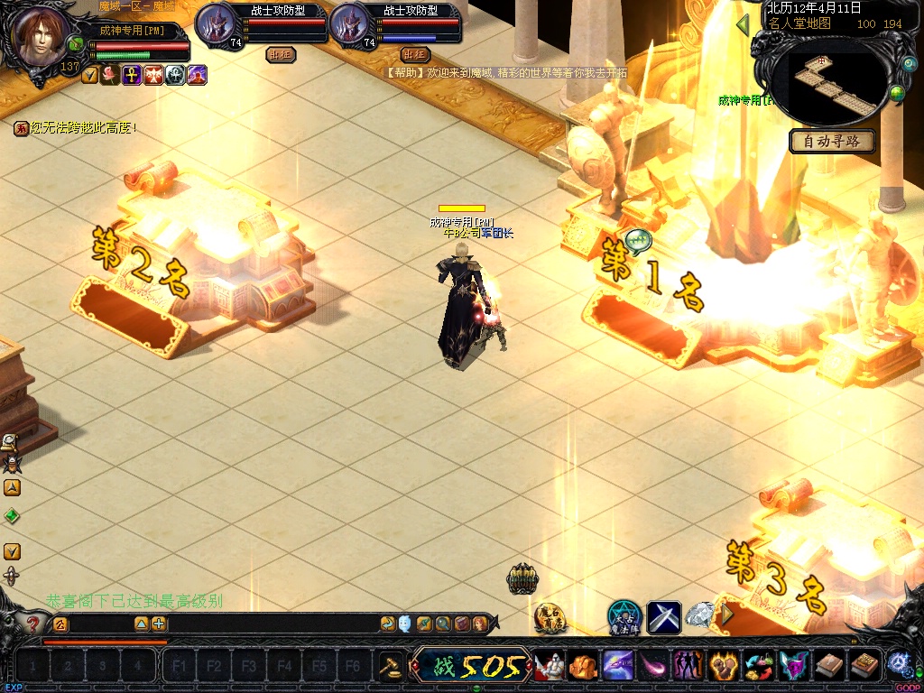 增加名人堂排行。现在暂时只要把名人堂第一上面的东西给杀掉即可获得第一的象征