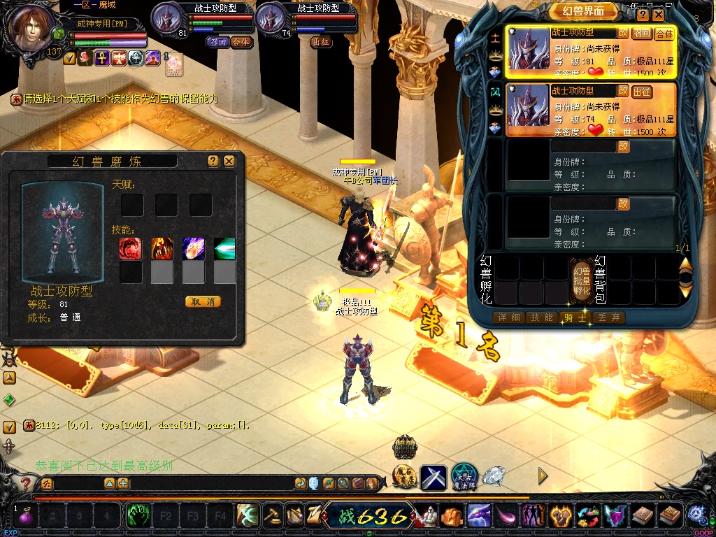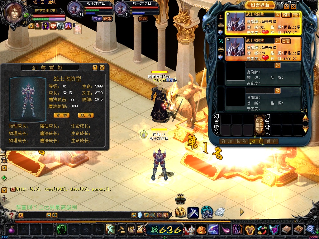 完美仿官方最高三宠 装备最高+12 战魂+8 等级最高137级 绝不出售任何变态物品和变态功能 绝不变态!!绝对稳定!
