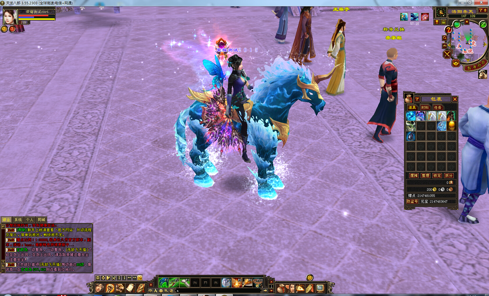 5.原端公告及上线全部显示荣耀天龙,有点小技术的都可以找到对应文件位置改为自己想改的,最新时装,坐骑,染色时装等等全部同步,客户端版本同步到3.55.2105,可以用截止目前最新客户端3.55.2303,如果官服再更新,不能保证端无错。