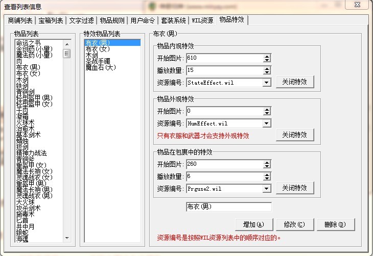 CHANGEITEMADDVALUE 装备位置(-1时是OK框中的装备, 0-12时是穿在身上的装备) 属性位置(0-14) (符号 + - =) 值