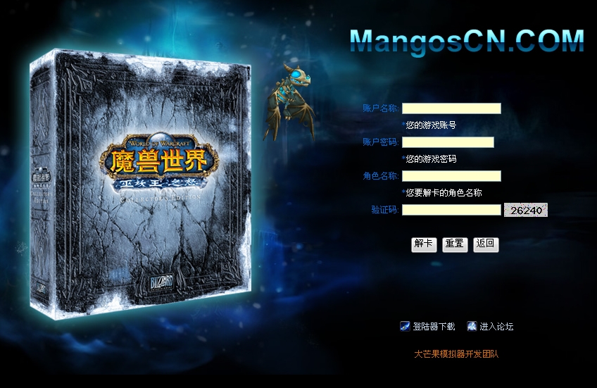 立即下载大芒果中国专用简单注册页角色解卡密码修改密码取回程序
