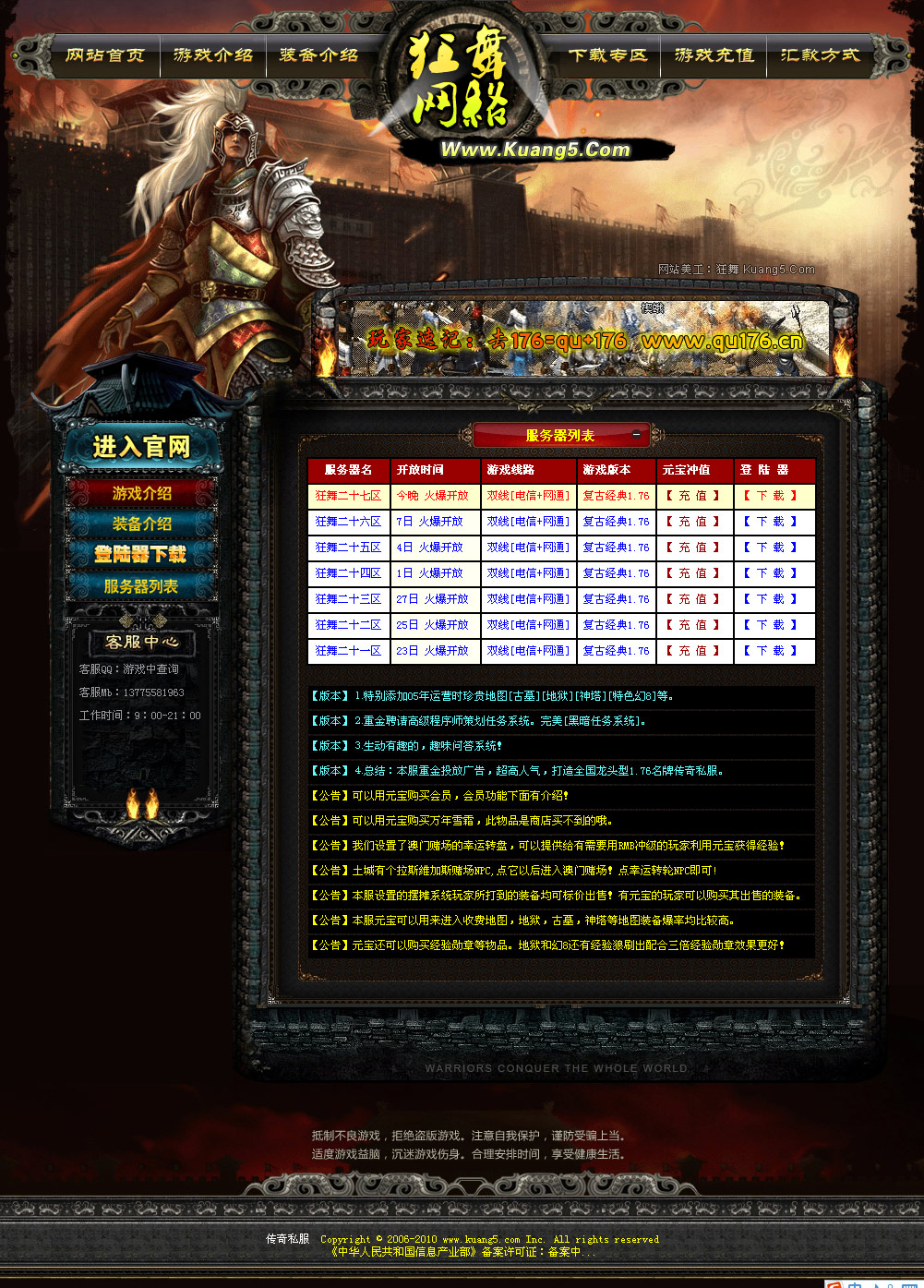 狂舞网络永恒传奇游戏网站模板
