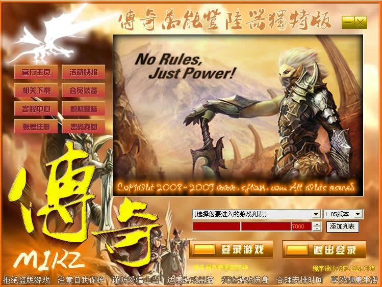 软件介绍:支持1.76,1.85,音乐,拍卖和商铺等版本,帐号注册,密码修改,密码找回,脱机等登陆等功能!