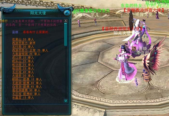 傲来国阳光大使处可进入单人副本,部分副本无法进入,暂未收录。