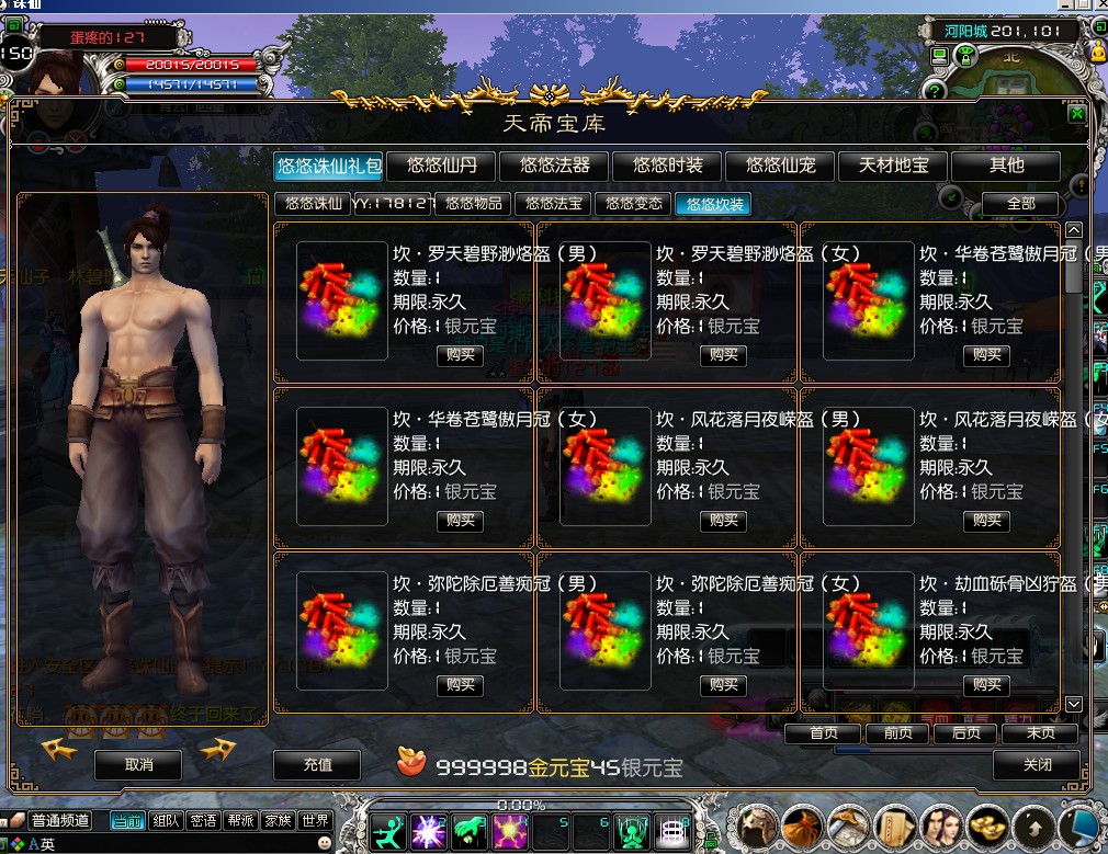2月4日更新:修改商城09时装栏变悠悠测试栏,增加变态装备和法宝