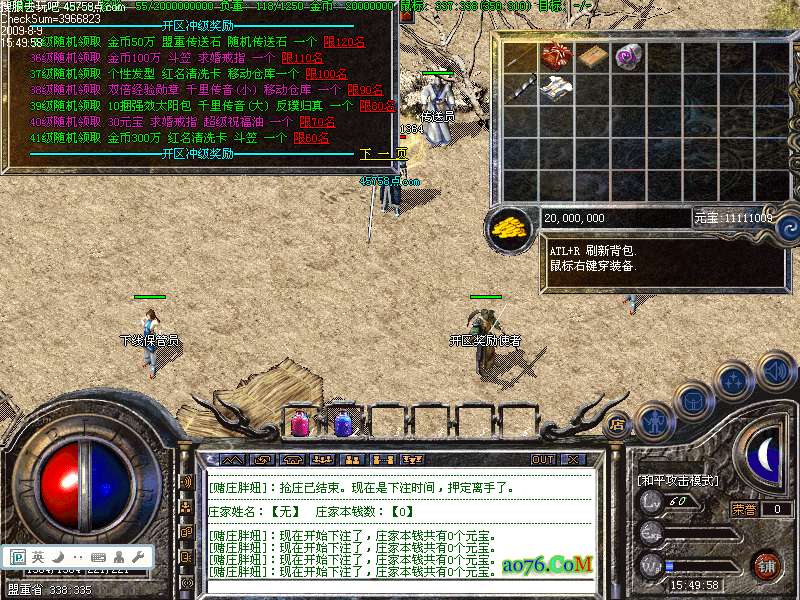 提示:登陆本服务器需要专用登陆器,否则不能登陆,按F12呼出自带内挂,封穿人穿怪。禁止使用各种变态加速外挂,一旦发现不管大号小号一律删号封IP处理!