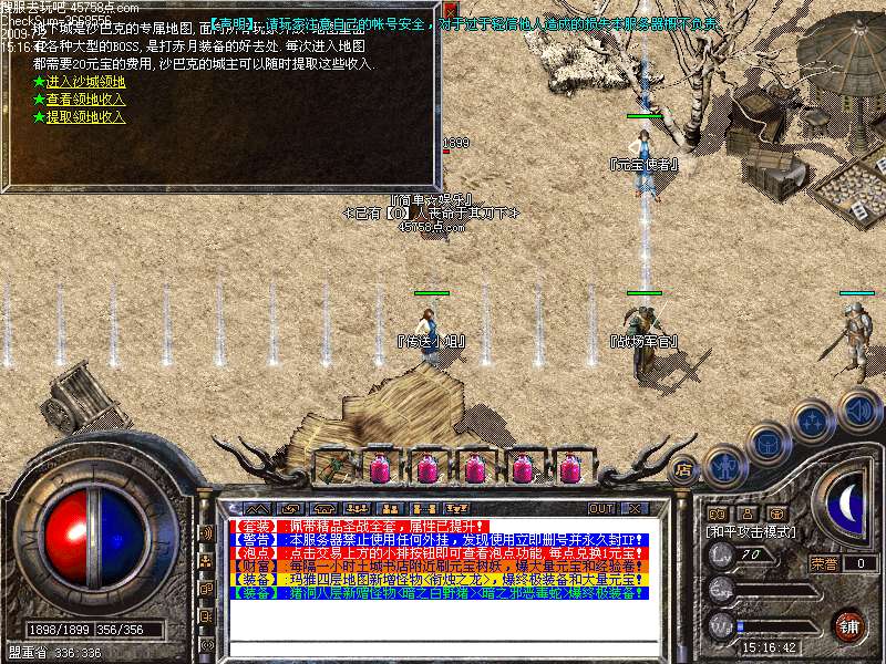 【沙城】:本服统一攻城时间为每周六晚上8点,希望各位玩家相互转告!
