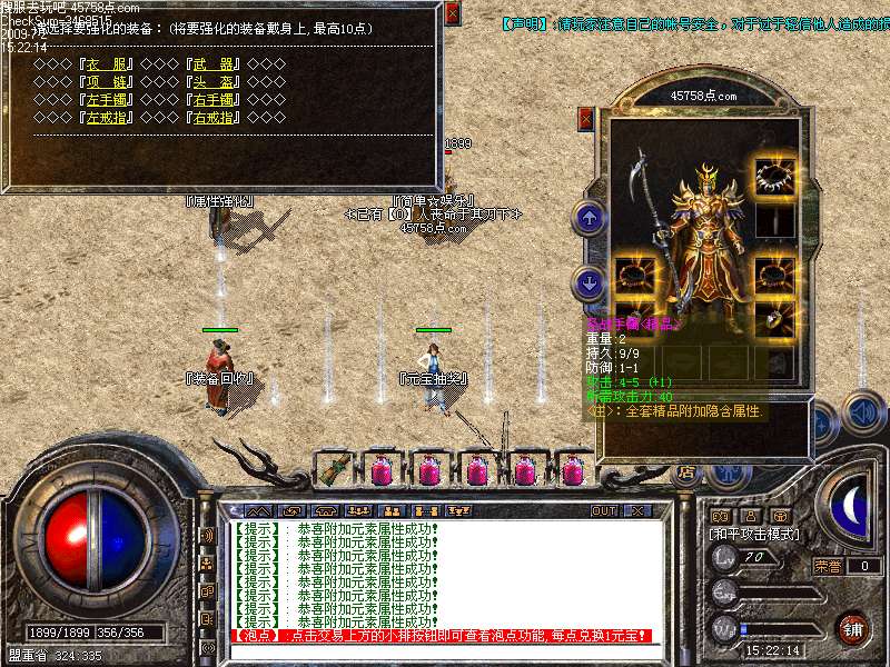 【装备】:包裹右下角有个装备升级按钮,可以对高级装备加随机属性!