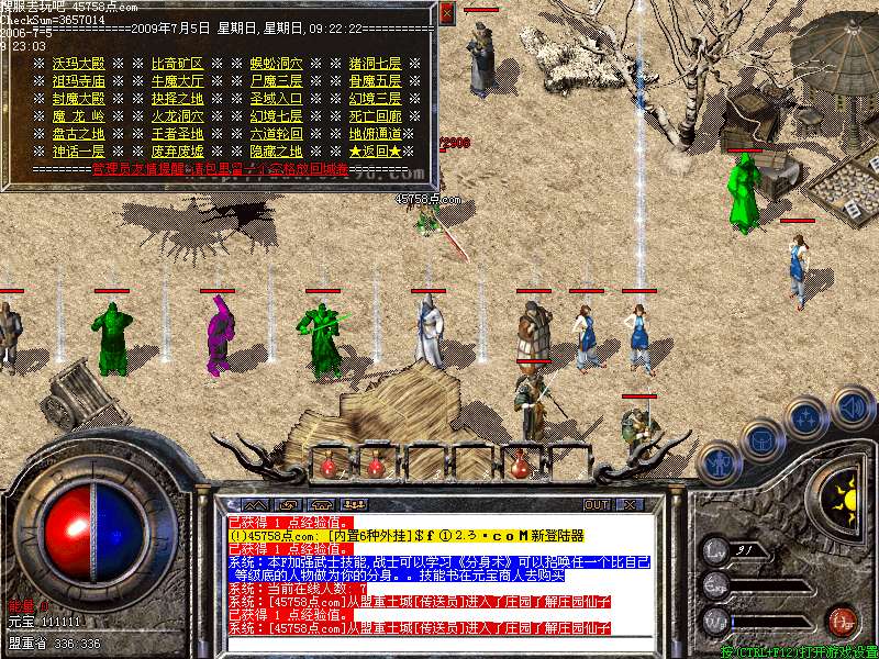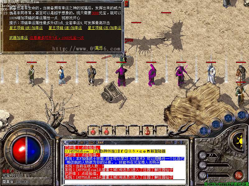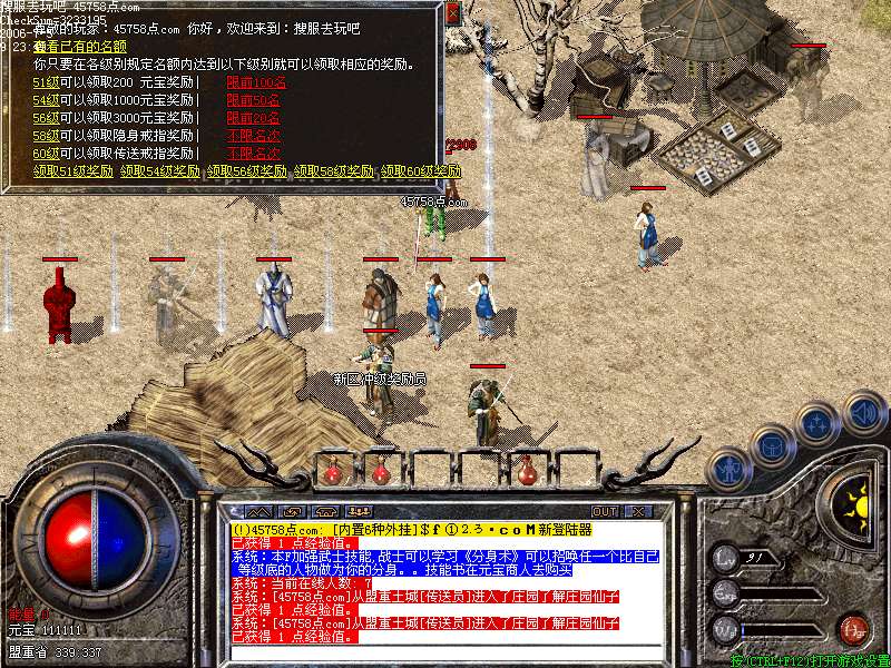 玩家可以通过盟城传送员传到庄园,可以用打到的元宝抽取经验值和各种装备!