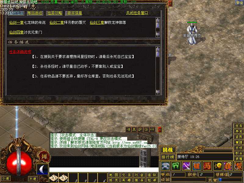 内通过杀死少见的几种怪物获得龙神密信上中下三本交给长者,带着密函回去找负责人。获得消息,