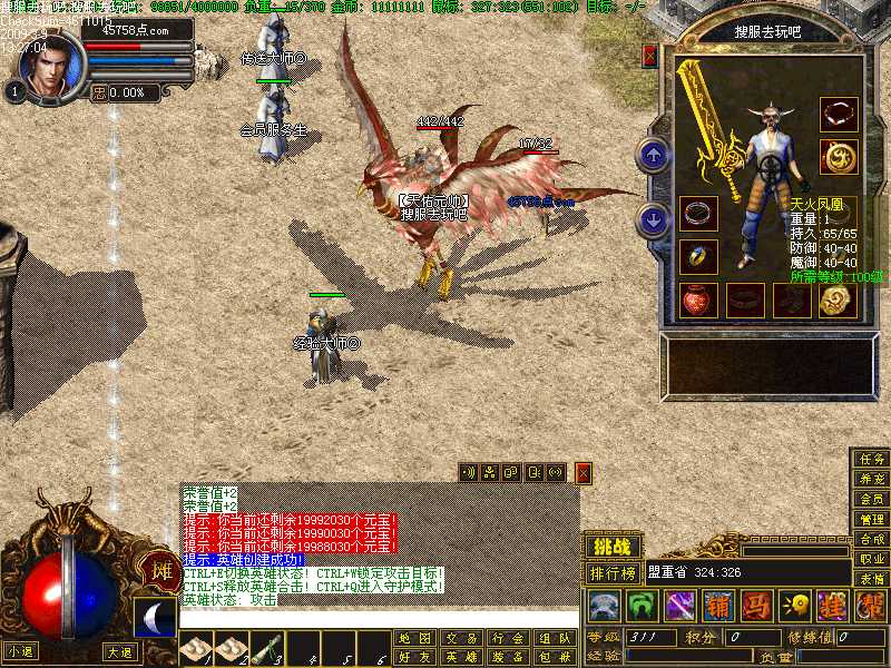 就可以获得寒月之冰。然后传送到火龙巢穴,跑到最后一层,杀火窟神龙!就算你穿终极套也会发现