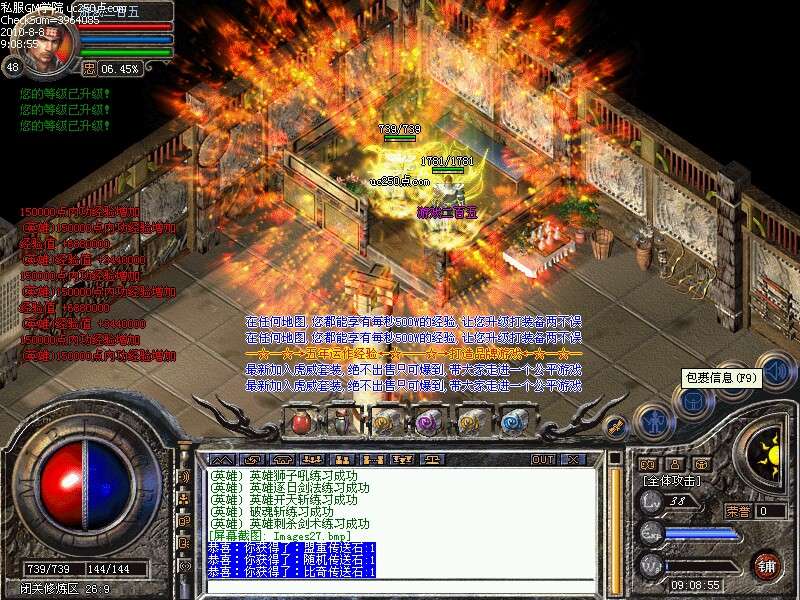 游戏介绍②:人物,英雄上线自动学会连击招式,技能送至5级,内功送36级,无须大家再花钱学习