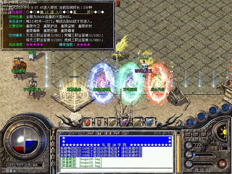 游戏活动②:全服每两小时打开秦始皇陵大门一次,80级以上玩家可进入,为全服暴率最高