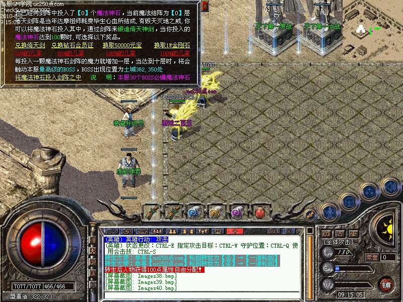 游戏活动④:倚天剑阵,向剑阵投入魔法神石,累积到100颗时可兑换倚天剑,会员证,元宝积分等