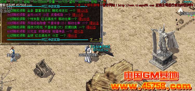 12.开区后的第3天由系统自动添加所有行会统一攻城,首次沙城主奖励1000元宝.