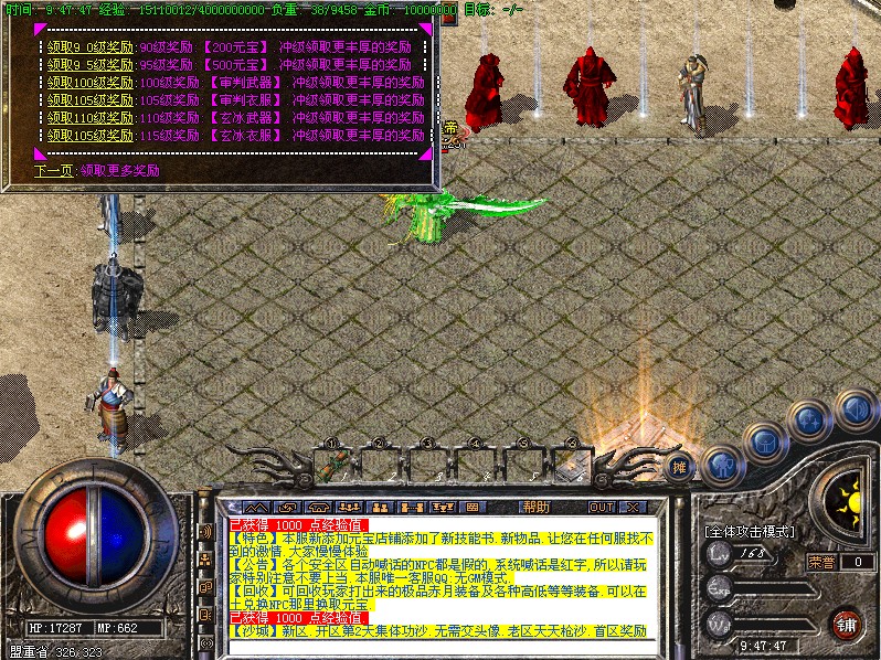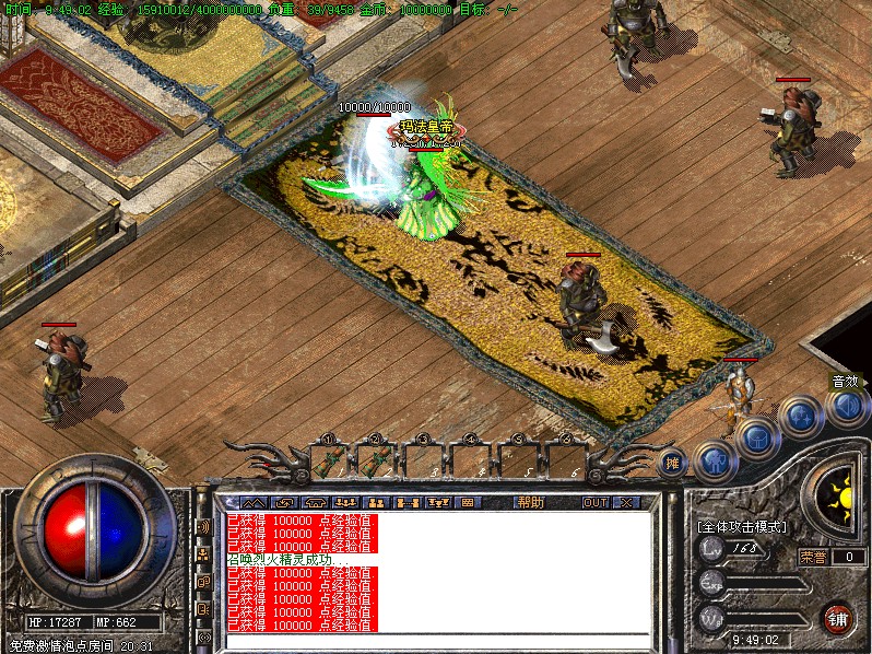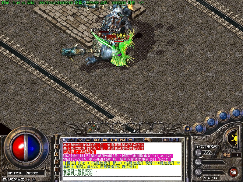 6:本服无特殊戒指,为了能更好的团队作战和团队打宝,本服只开通记忆套传送,可以更快的进入打宝地图,散人玩家可以借助传送符进行地图传送,自己挑战超级BOSS要特别需要耐心,但是报酬是相当丰厚的撒!~~