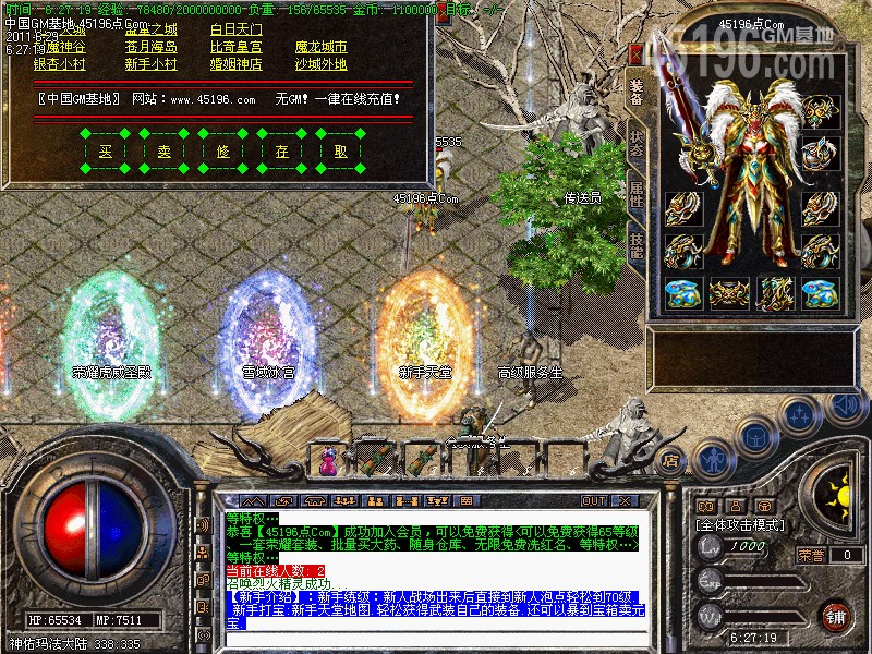 【新手介绍】:新手练级:新人战场出来后直接到新人泡点轻松到70级. 新手打宝:新手天堂地图.轻松获得武装自己的装备.还可以暴到宝箱卖元宝.
