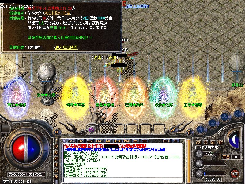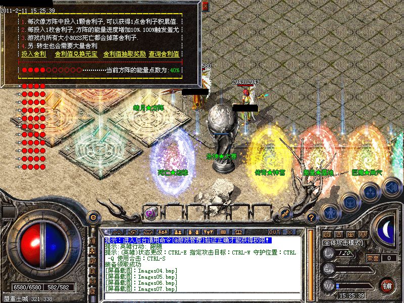 皓月方阵:通过怪物身上掉落的舍利子来启动方阵。当方阵能量为100%时。蚩尤会出现在土药店。