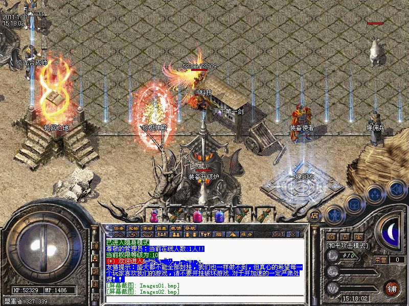 系统公告:从圣战到战神装备都可以在土城[回收装备]处进行回收处理,可以一键批量回收和单件回收,无法批量回收的请单件回收