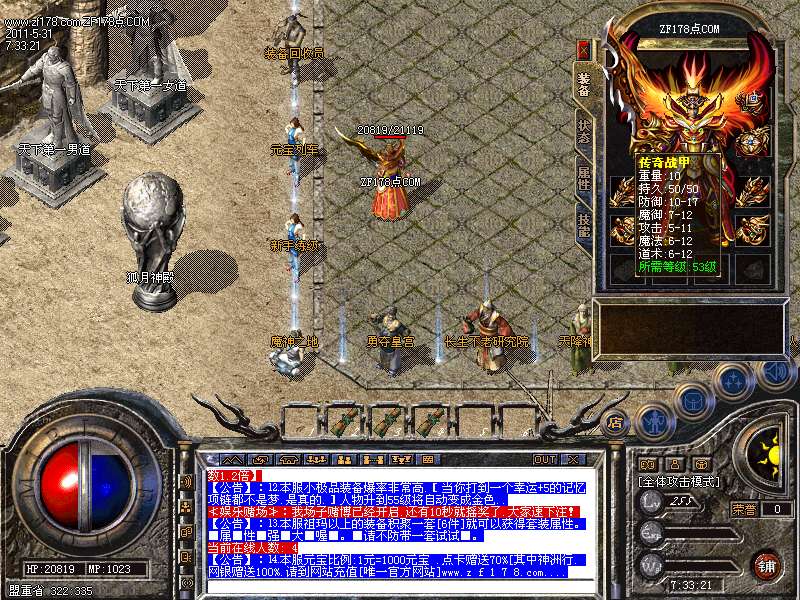 【公告】:⒖本服装备爆率非常高.所有装备全爆.[新区祖玛2倍爆率]装备回收元宝经验超高.全新怪物.全新地图.全新装备.只要有耐心.会玩.绝对可以拥有...!