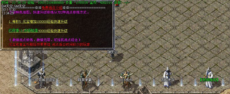 【升级攻略】:本服设有元宝泡点,金币刷怪,带上四倍经验勋章,等级狂飙!