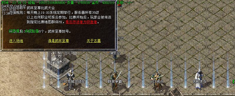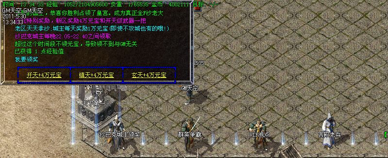 【攻沙奖励】:开区第3天后全区行会统一攻沙,首次奖励:40000元宝+开天级武器.