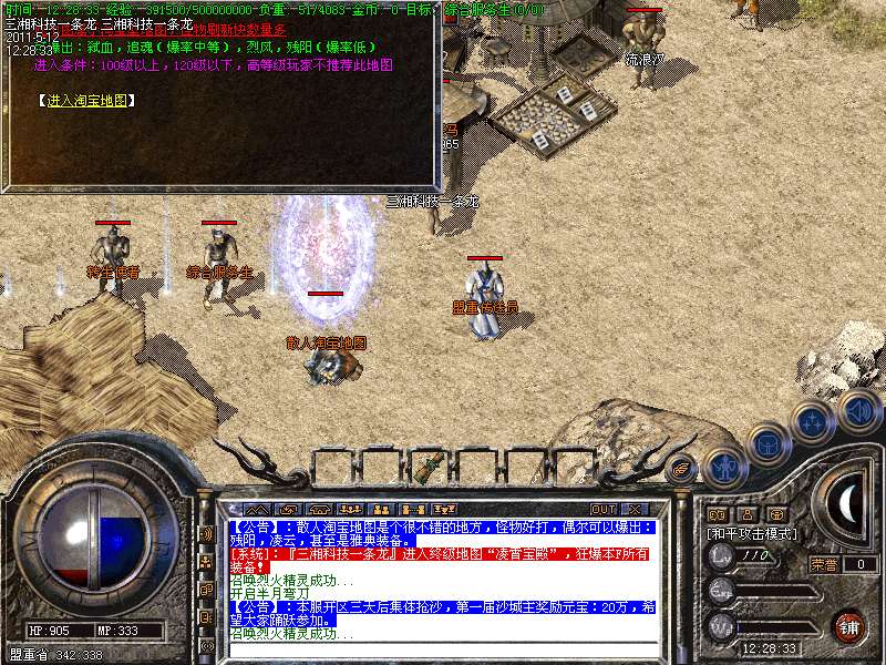 11 散人淘宝地图是个很不错的地方,怪物好打,偶尔可以爆出:残阳,凌云,甚至是雅典装备。