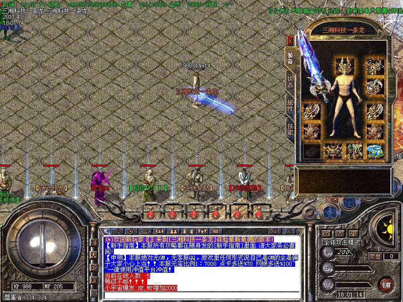 【特色4】 增加排行榜npc 玩家随时可以看到服里所有的等级和元宝数量,杜绝内服,给大家一个公平的游戏环境!