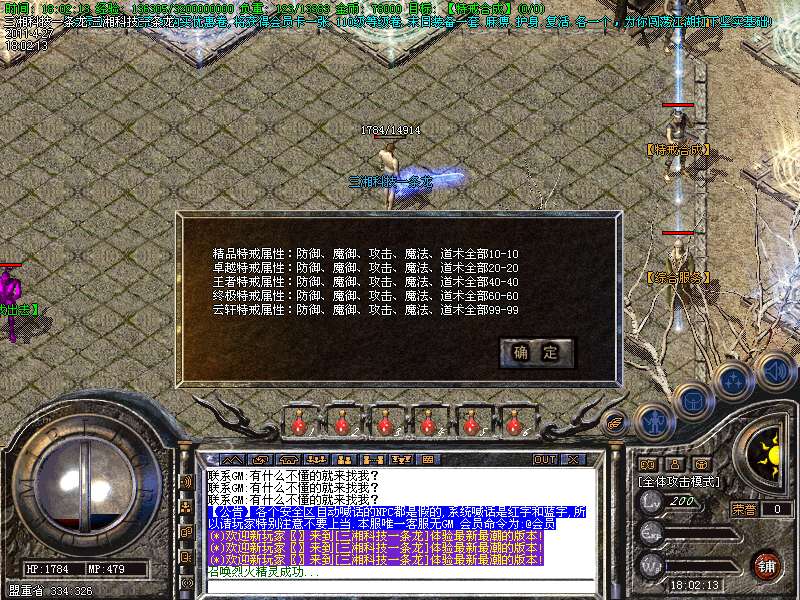 【特色2】 本版本装备可以合成,非常简单只需要2样低级装备就可以合成高级装备!详细咨询土城合成师!