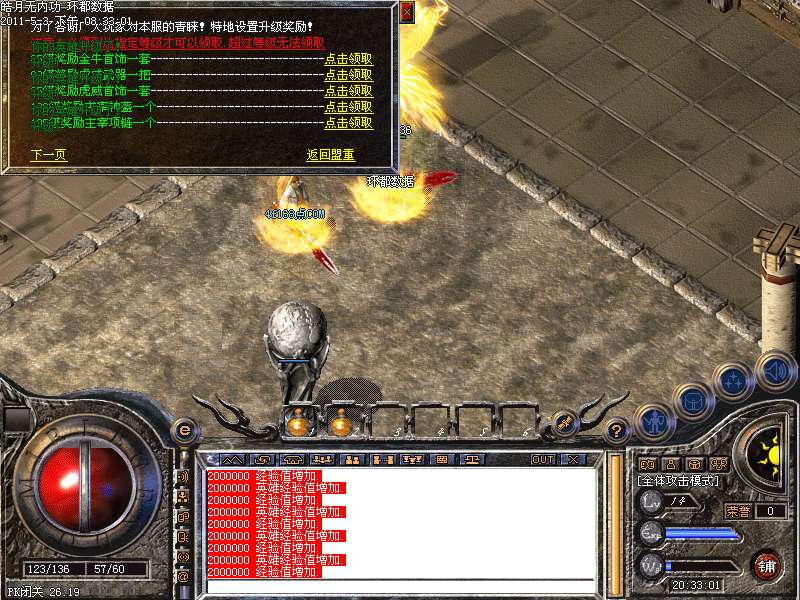 [255,249]攻城奖励:晚上22:01-22.30可以自行在沙皇宫领取奖励.攻城奖励为128W元宝!