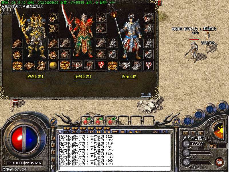 ④.终极装备分为 绝世套 魔界套 妖界备,穿齐10件触发超级属性!