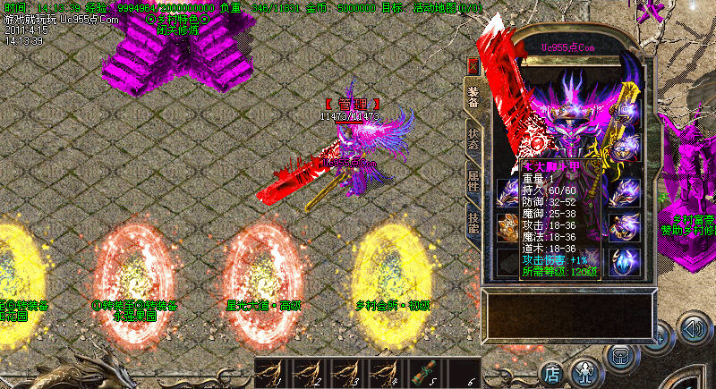 【转生系统】人物转生需要到盟重土城左边的转生雕像那里完成转生.转生后可获得属性奖励.还有酷炫的转生封号.