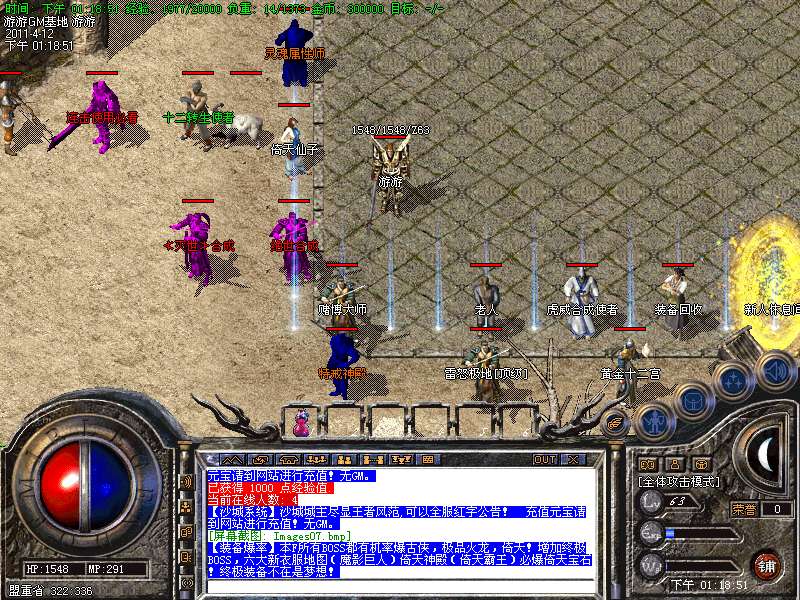 【公告】各个安全区自动喊话的NPC都是假的,系统喊话是红字和蓝字,所以请玩家特别注意不要上当.本服唯一客服无GM