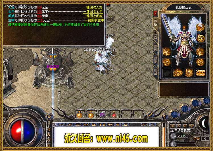 全新一键回收功能.把你不需要的装备可以直接在土城回收员那里一键回收