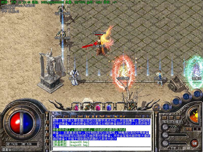 装备: 本服暴率适中,初中期玩家可以到雪域,神魔洞打到初中等装备。高等级玩家可以到终极之地获取终极装备。开赤金宝箱也能获取大量的高级装备(开箱子得到高级武器的几率很大的)