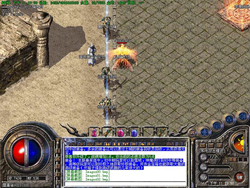 新手:新手进入服务器以后可以到新手泡点升级,然后到魔龙,雪域获取初中级装备。多余的装备还可以通过土城的装备回收员回收,从而获得元宝。