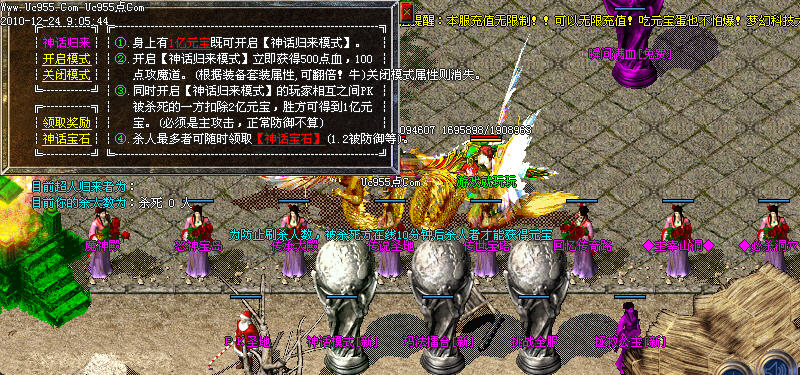 天下第一申请;每天零点自动清理,请玩家去NPC处申请,1.2倍攻击可别让别人抢走咯,还可以领奖哦,(1.2被攻击包括攻击/魔法/道术)(城主为1.3倍)