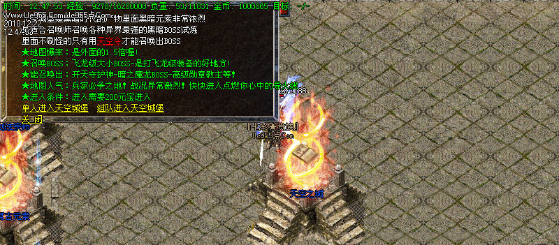 服务器暗之轮回教主,每天刷新四次,暴开天类武器机率非常的高喔!!!