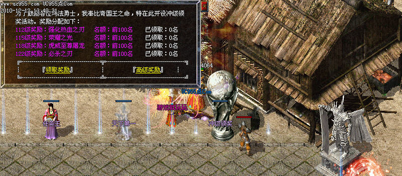 6. 冲级奖励:112送强化热血,115送荣耀之光!118送虎威屠龙,122送必杀之刃,125送主宰神剑,128送传奇神剑。到达领奖励等级请马上领取,越级无法领取,后果自负!