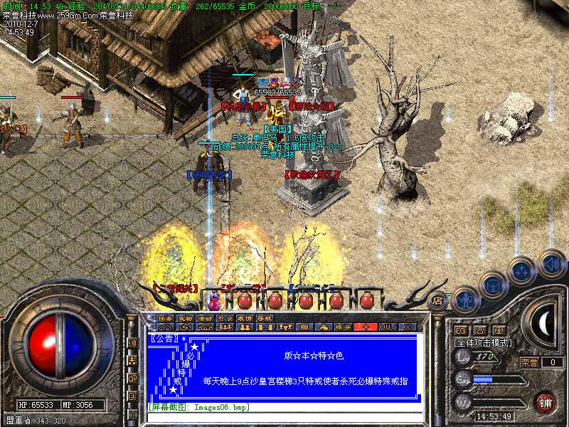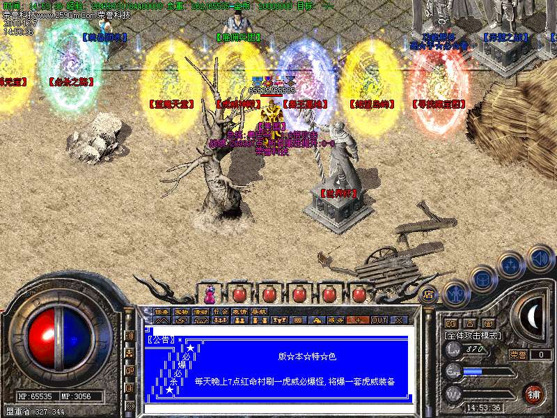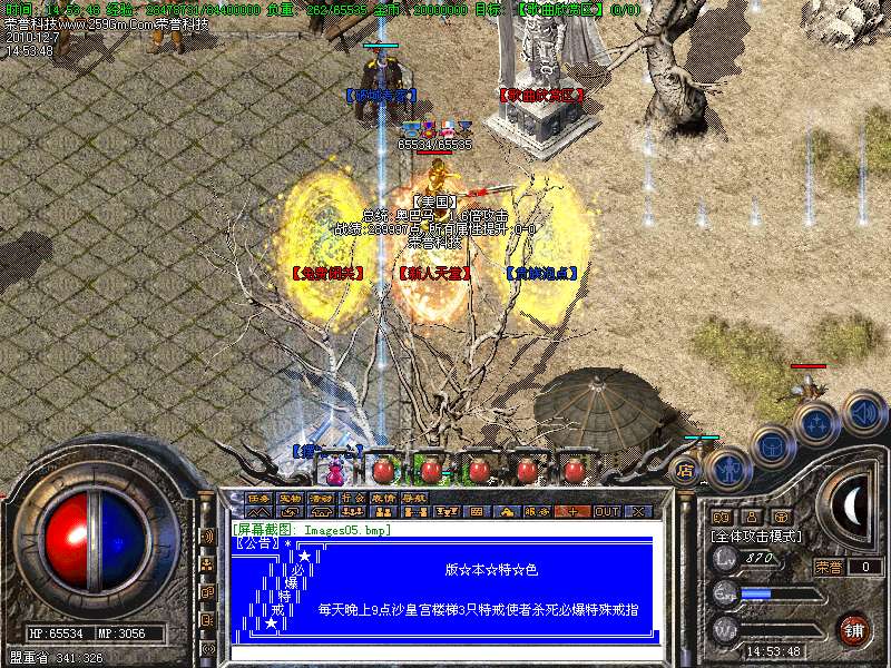 11.(☆) 沙城奖励█ 晚上10点〓 沙巴克皇宫内 █ 奖励300W元 宝 →