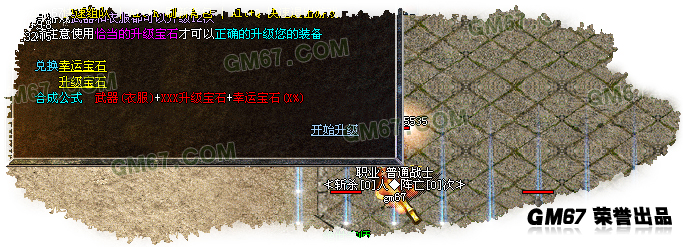 特别介绍:本站武器和衣服都可以升星,独特的升星系统,武器和衣服都可以升级12次,请注意升级时选择适合的升级宝石和幸运宝石,装备升级失败有几率破碎.