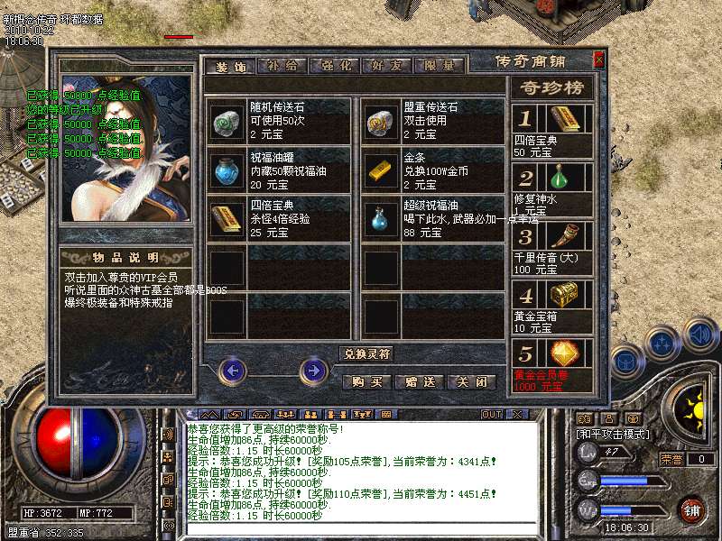 【元宝售价】:「短信1:100」「点卡1:150」「网银1:200」,在线充值请登陆本官方网站进行充值,充值成功后,到游戏[元宝充值NPC],领取元宝 [游戏本无价,购买自权衡。需求者千金不贵,无意者一分不取。
