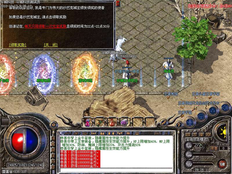 4.盟重→激情中心→90分钟刷4只BOSS四大财主→可爆到终极神物★荣耀勋章★和大量元宝。