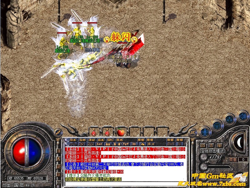 新区开放第二天举行攻城活动,拿下沙城行会奖励元宝188万,老区每天抢沙奖励68万元宝.